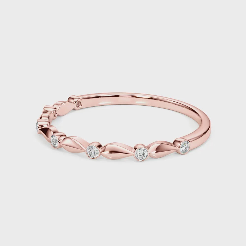 14K Rose Gold Wedding Bands Bezel Set With 0.07 TCW Diamond (SI2, H-I)