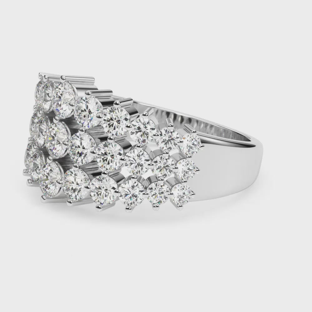 14K White Gold 3 Row Fashion Ring With 0.60 TCW Diamond (Lab Grown VS-SI1, E/F/G)