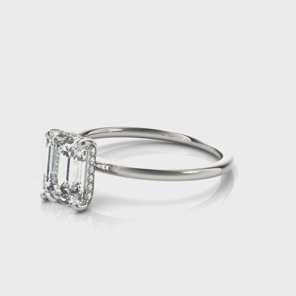 14K White Gold Engagement Ring Emerald Cut Center With 0.10 TCW Diamond (Lab Grown VS-SI1, E/F/G)