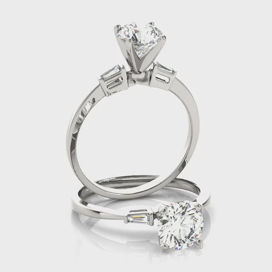 14K White Gold Engagement Rings 3 Stone Baguette With 0.12 TCW Diamond (SI1-SI2, G-H)