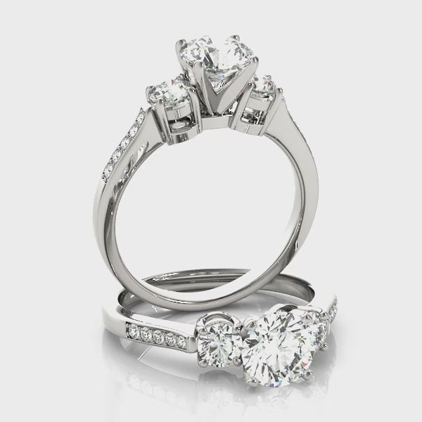 14K White Gold Engagement Rings 3 Stone Round With 0.45 TCW Diamond (Lab Grown VS-SI1, E/F/G)