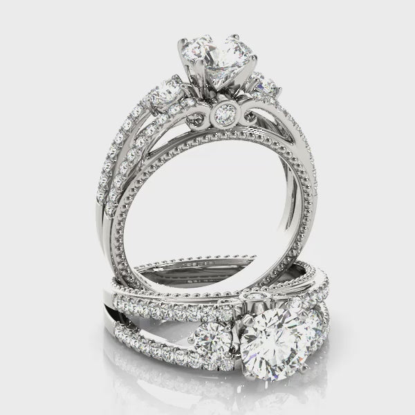 14K White Gold Engagement Rings 3 Stone Round With 0.50 TCW Diamond (SI1-SI2, G-H)