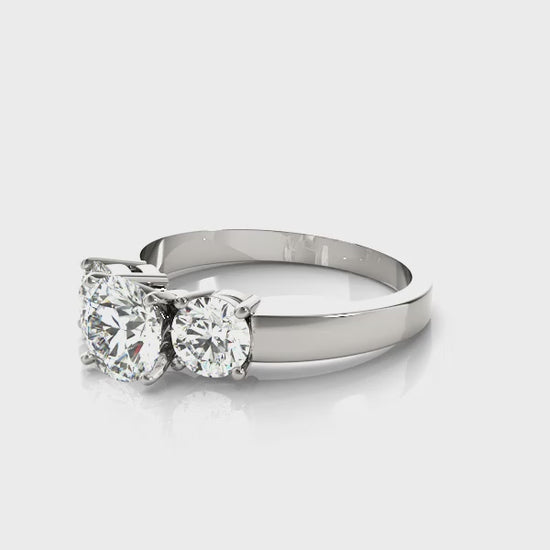 14K White Gold Engagement Rings 3 Stone Round With 1 TCW Diamond (I1, H-I)