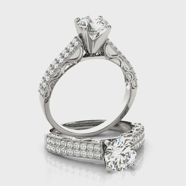 14K White Gold Engagement Rings Antique With 0.36 TCW Diamond (SI2, H-I)