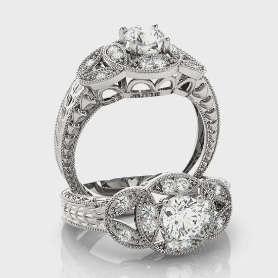 14K White Gold Engagement Rings Antique With 0.68 TCW Diamond (SI2, H-I)