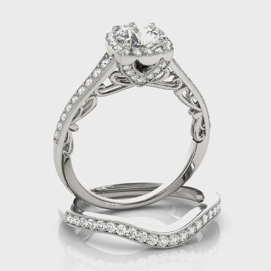 14K White Gold Engagement Rings Halo Round With 0.22 TCW Diamond (SI1-SI2, G-H)