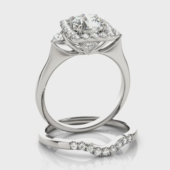 14K White Gold Engagement Rings Halo Round With 0.48 TCW Diamond (SI1, G)