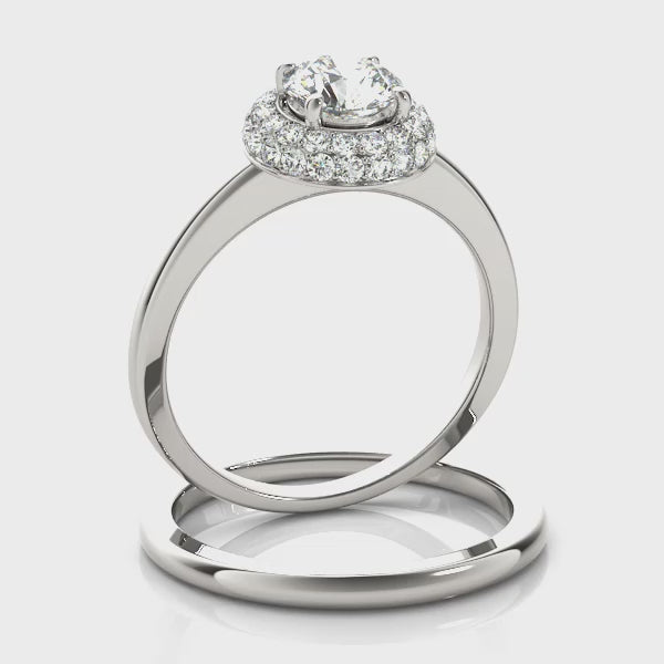 14K White Gold Engagement Rings Halo Round With 0.51 TCW Diamond (SI2, H-I)