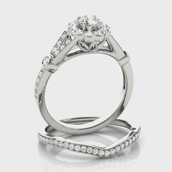14K White Gold Engagement Rings Halo Round With 0.53 TCW Diamond (SI1-SI2, G-H)