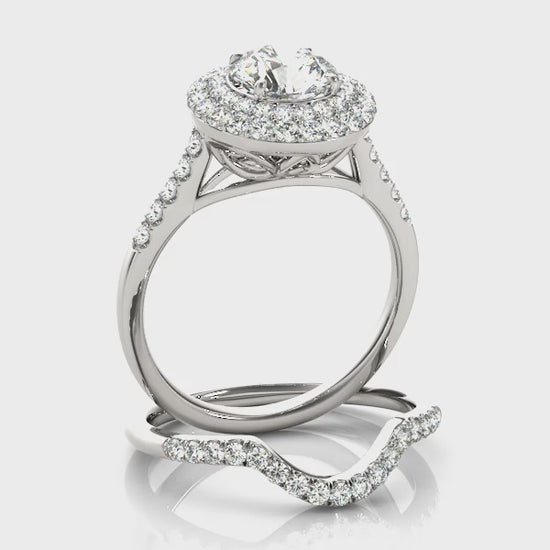 14K White Gold Engagement Rings Halo Round With 0.69 TCW Diamond (SI1-SI2, G-H)