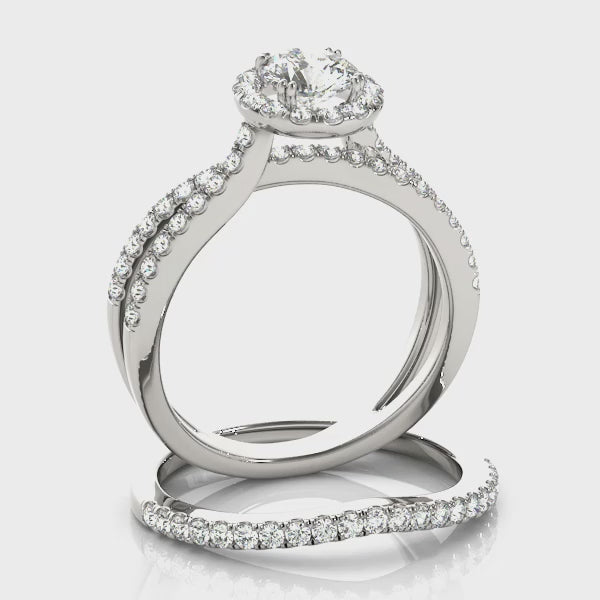 14K White Gold Engagement Rings Halo Round With 0.77 TCW Diamond (SI1-SI2, G-H)