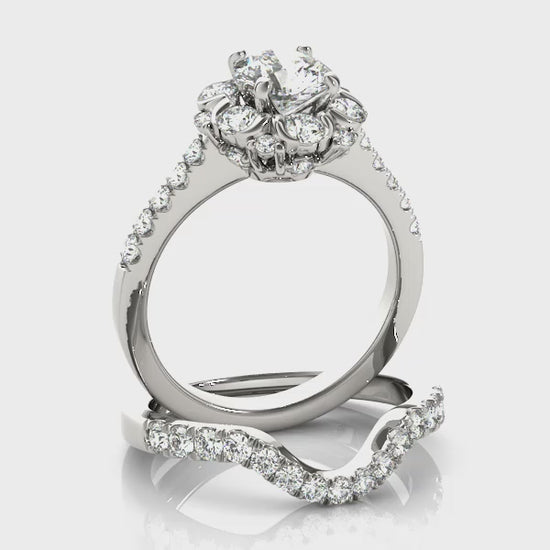 14K White Gold Engagement Rings Halo Round With 0.79 TCW Diamond (SI1-SI2, G-H)