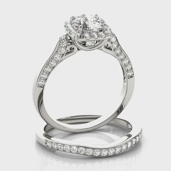 14K White Gold Engagement Rings Halo Round With 0.83 TCW Diamond (SI1-SI2, G-H)