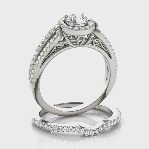 14K White Gold Engagement Rings Halo Round With 0.84 TCW Diamond (I2, H-I)