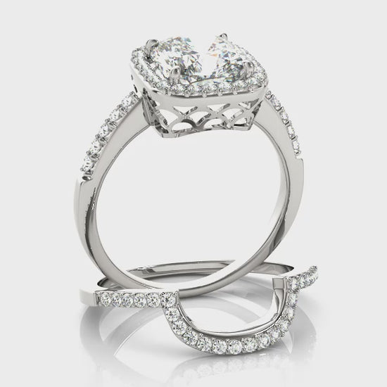 14K White Gold Engagement Rings Halo Square & Cushion With 0.22 TCW Diamond (SI2, H-I)