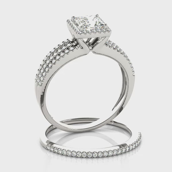 14K White Gold Engagement Rings Halo Square & Cushion With 0.75 TCW Diamond (SI1-SI2, G-H)