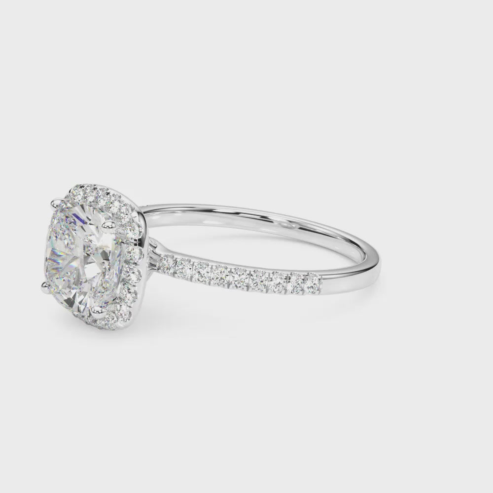 14K White Gold Engagement Rings Halo Square & Cushion With 2.28 TCW Diamond (Lab Grown VS-SI1, E/F/G)