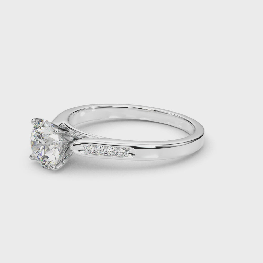14K White Gold Engagement Rings Single Row Channel Set With 0.08 TCW Diamond (I1, H-I)