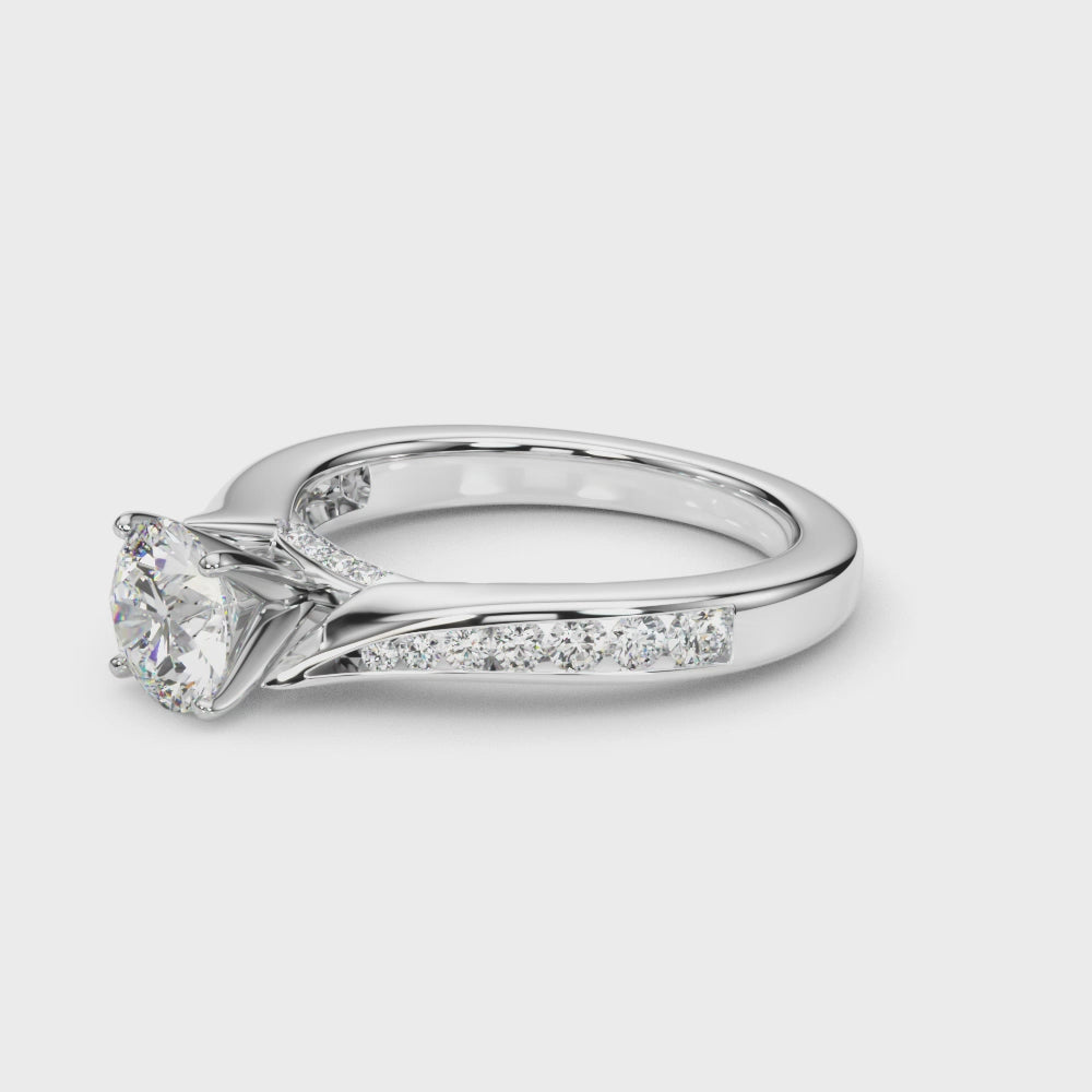 14K White Gold Engagement Rings Single Row Prong Set With 0.08 TCW Diamond (I1, H-I)