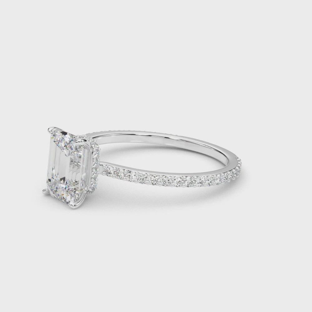 14K White Gold Hidden Halo Emerald Cut Center Single Row With 1.78 TCW Diamond (SI1-SI2, G-H)