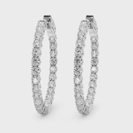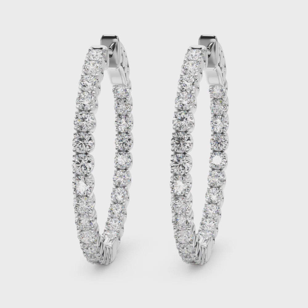 14K White Gold Lab Grown Diamond 1.1 Inch 4 Prong Round Hoop With 2 TCW Diamond (Lab Grown VS-SI1, E/F/G)