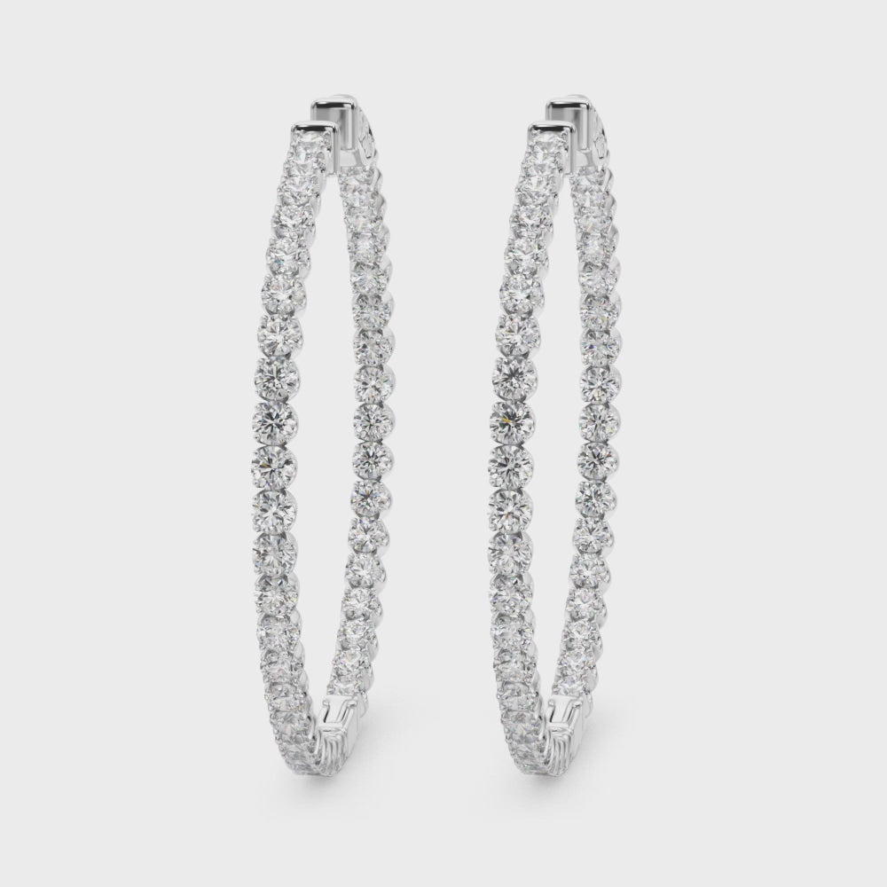 14K White Gold Lab Grown Diamond 1.6 Inch 4 Prong Round Hoop With 4 TCW Diamond (Lab Grown VS-SI1, E/F/G)