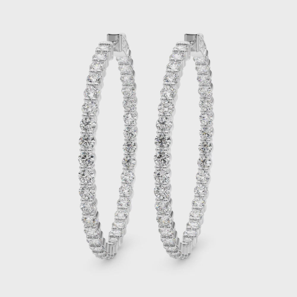 14K White Gold Lab Grown Diamond 1.75 Inch 2 Prong Round Hoop With 6.30 TCW Diamond (Lab Grown VS-SI1, E/F/G)