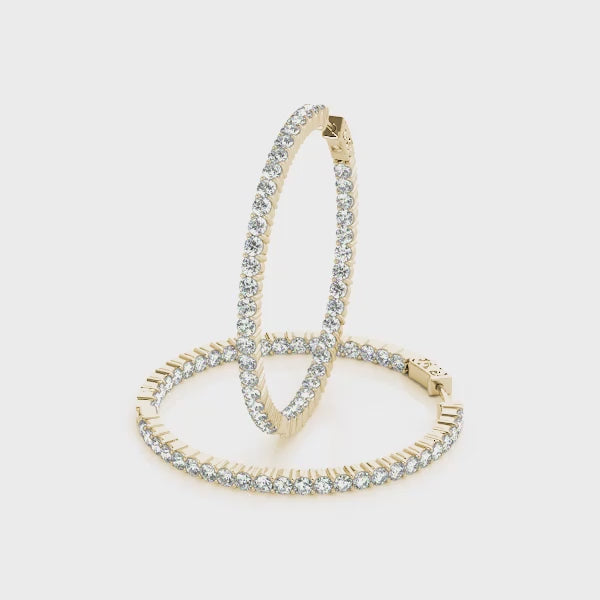14K Yellow Gold 1.2 Inch 2 Prong Round Hoop-open Back With 2.52 TCW Diamond (Lab Grown VS-SI1, E/F/G)