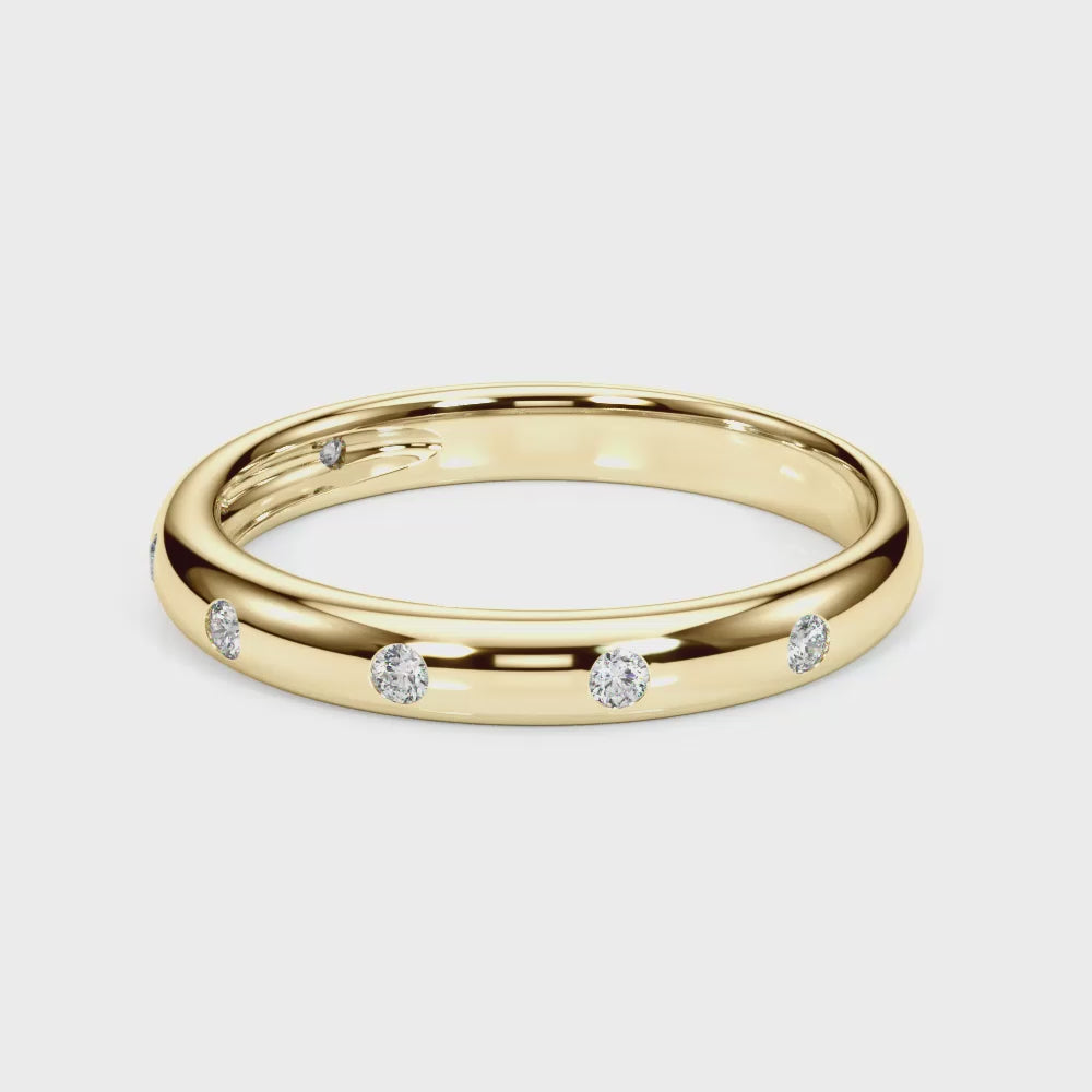 14K Yellow Gold Wedding Bands Bezel Set With 0.10 TCW Diamond (Lab Grown VS-SI1, E/F/G)