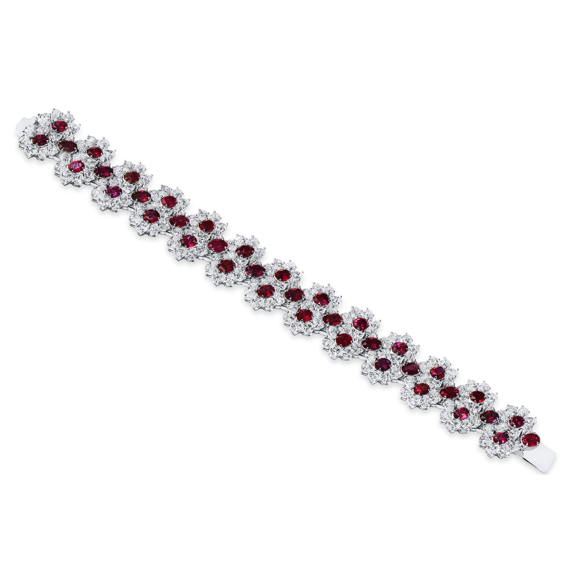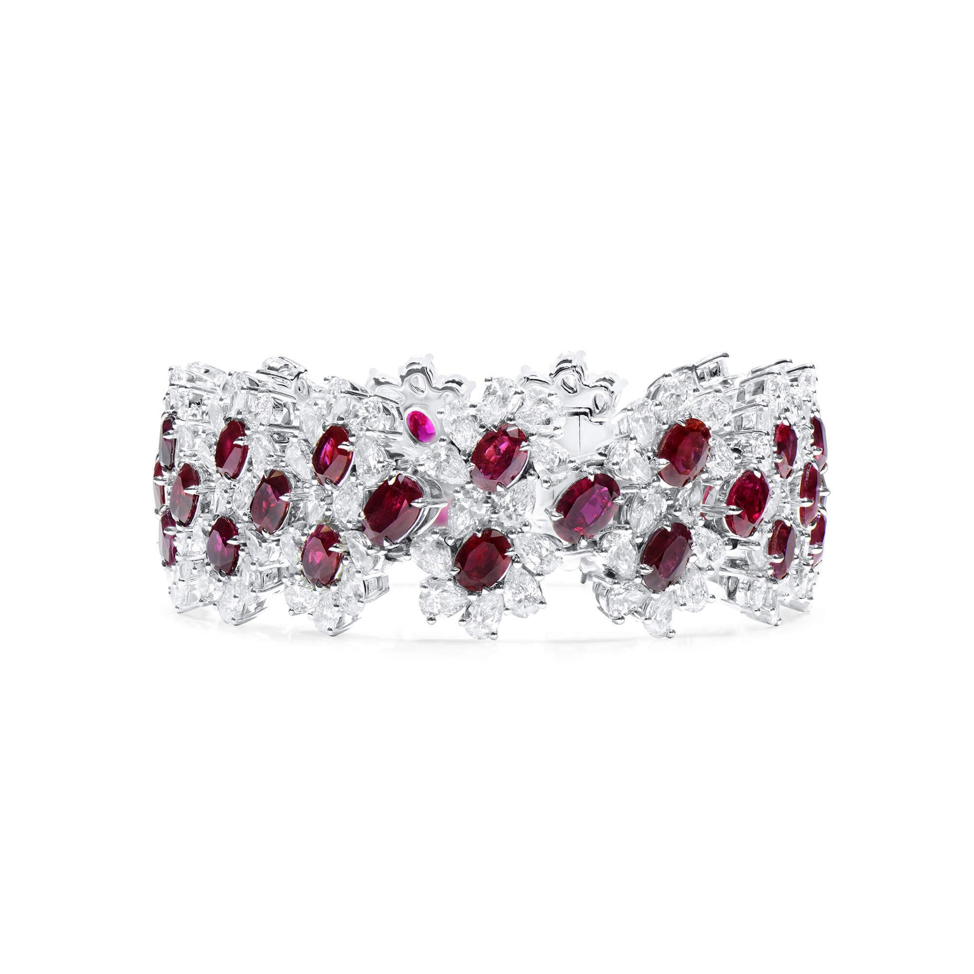 18K White Gold Statement Bracelet With 17.84 TCW Oval Shape Natural Ruby, BELLEROPHON Certified