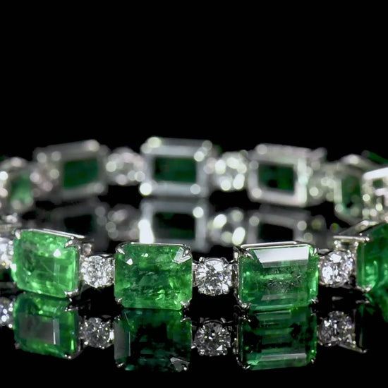 18K White Gold Statement Bracelet With 32.95 TCW Emerald Shape Natural Emerald, GRS Certified