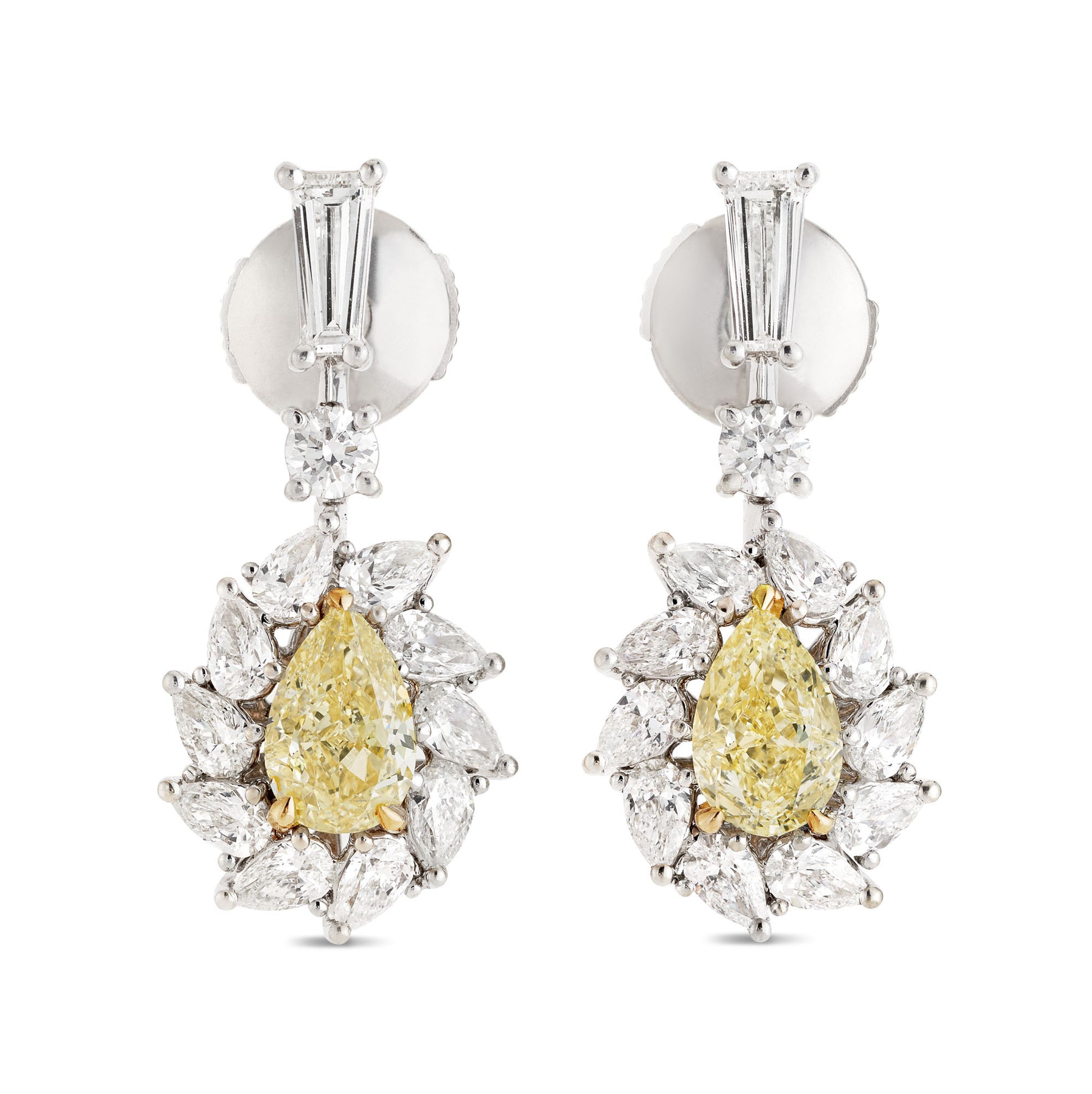 18K White Gold Statement Earrings With 1.43 TCW Yellow Pear Shape Natural Diamond, GIA Certified