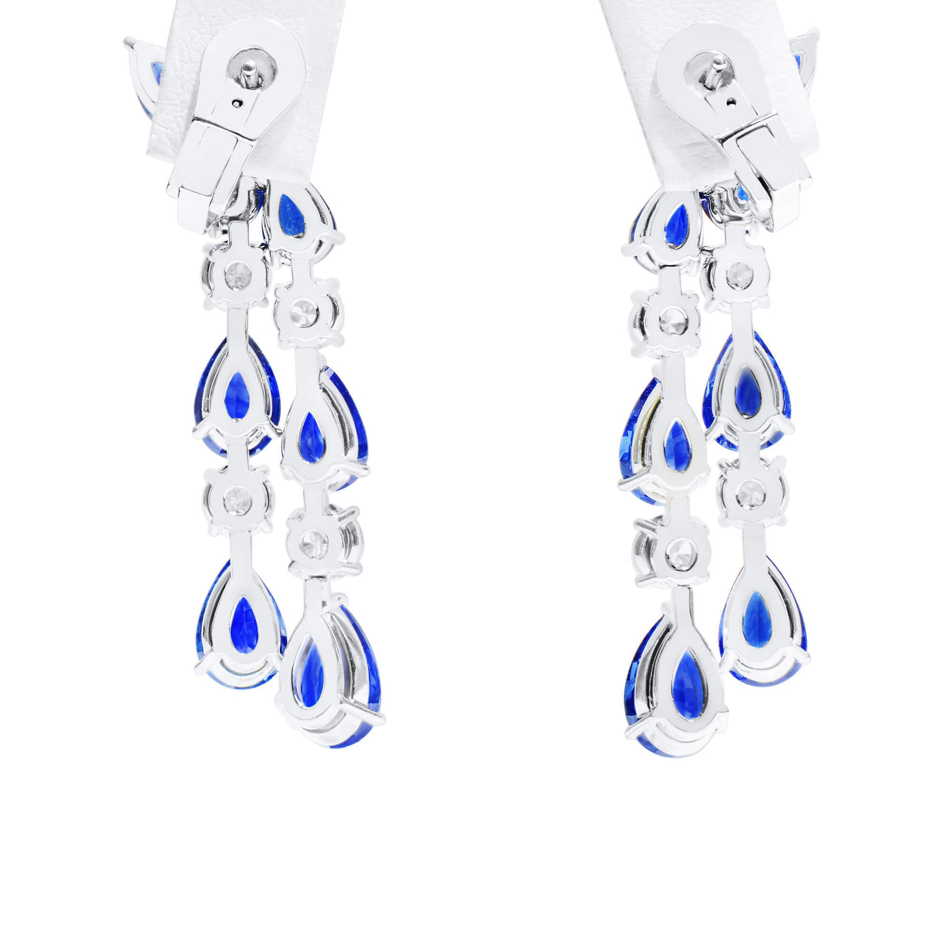 18K White Gold Statement Earrings With 16.02 TCW Pear Shape Natural Sapphire, EG_LAB Certified