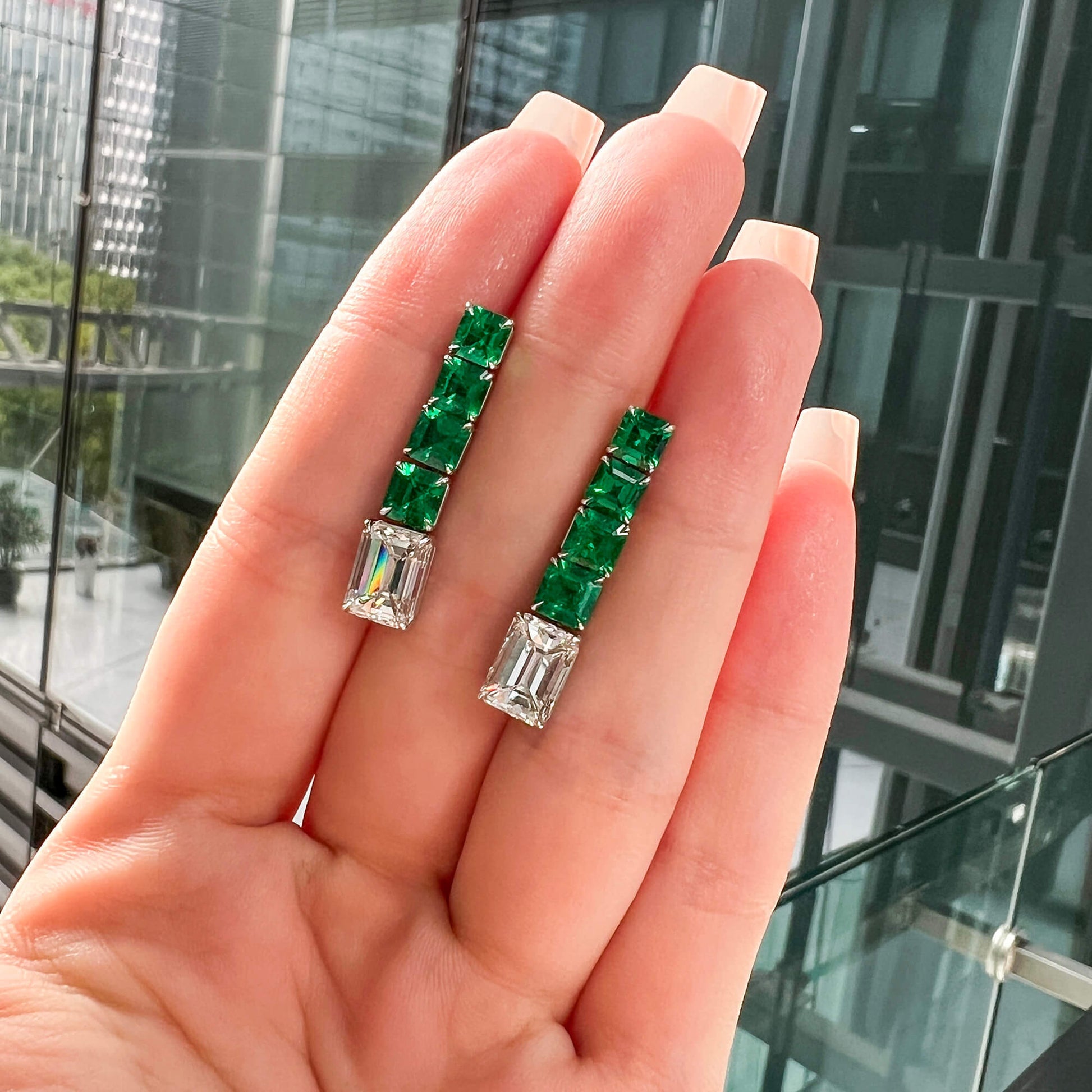 18K White Gold Statement Earrings With 4.02 TCW Emerald Shape Natural Diamond, GIA Certified