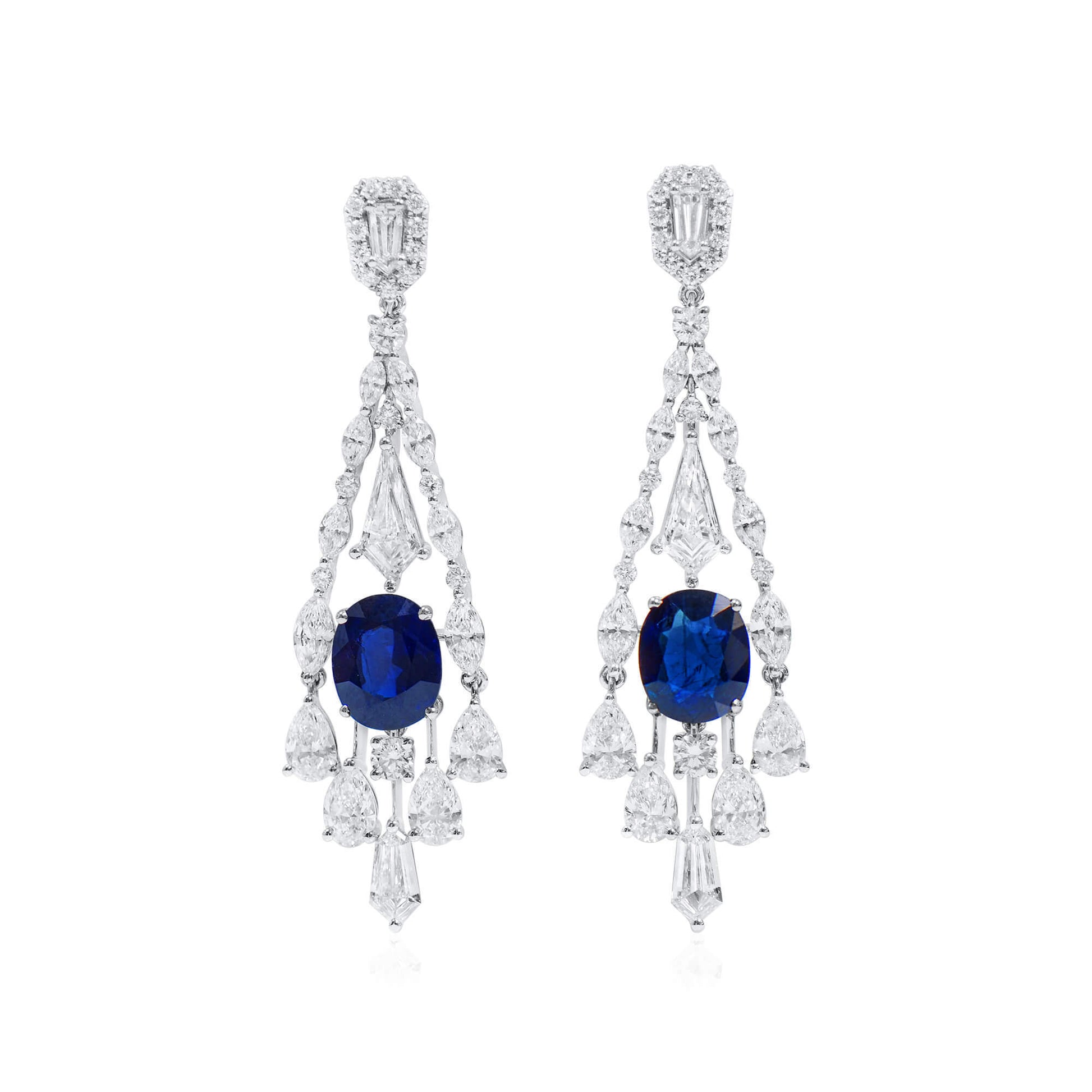 18K White Gold Statement Earrings With 4.91 TCW Oval Shape Natural Sapphire, GRS Certified