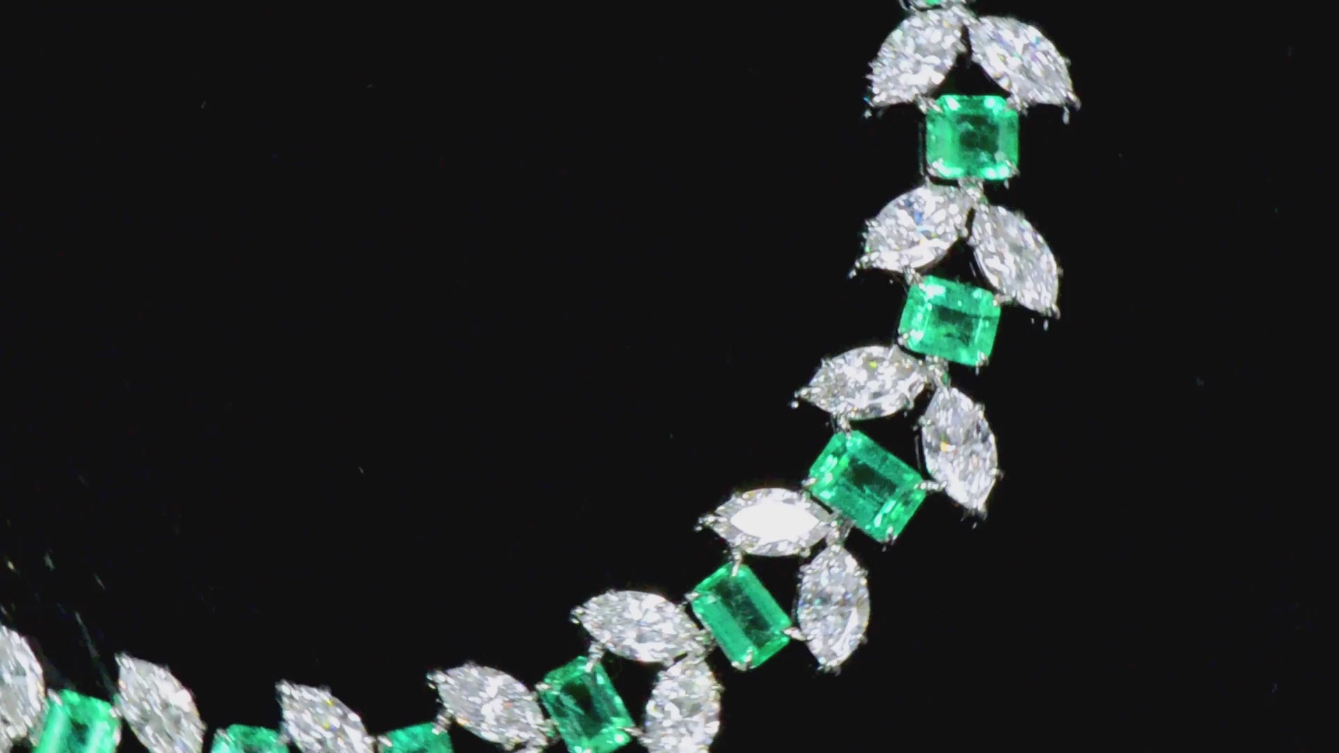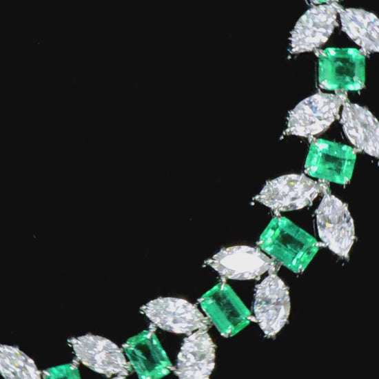 18K White Gold Statement Necklace With 20.59 TCW Octagonal Shape Natural Emerald, GRS Certified
