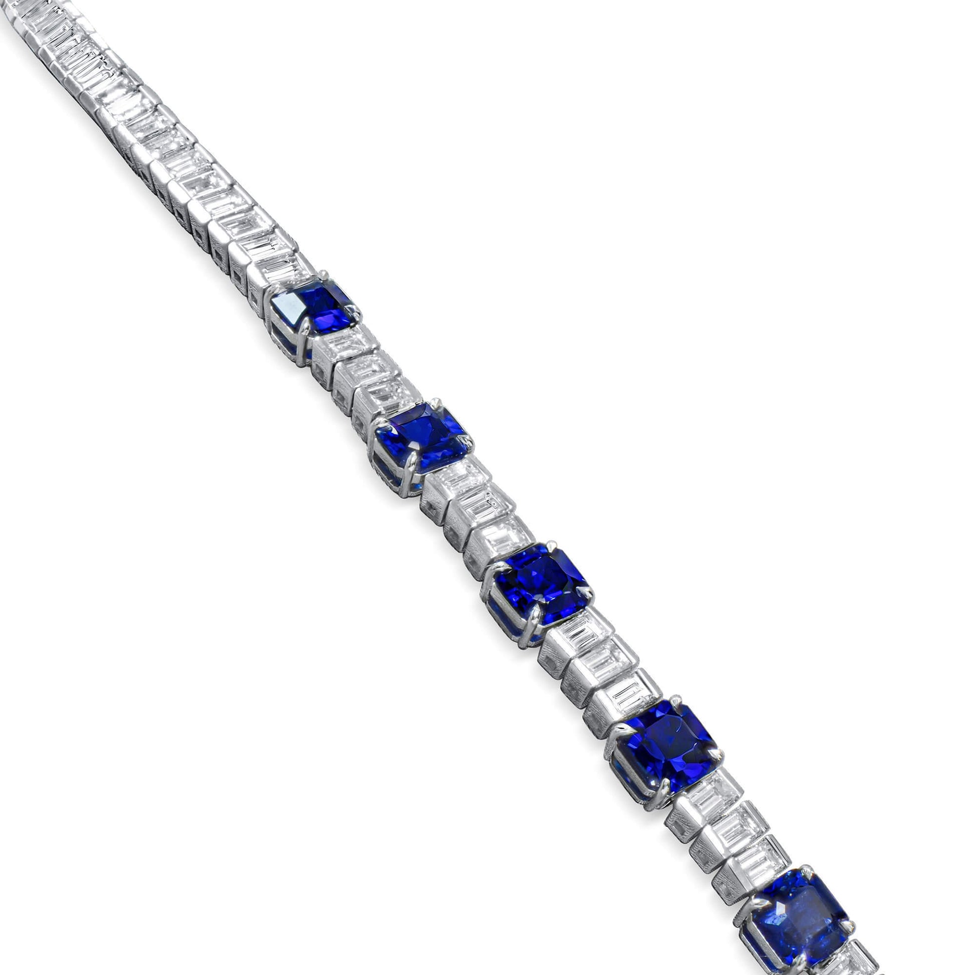 18K White Gold Statement Necklace With 22.44 TCW Other Shape Natural Sapphire, GRS Certified