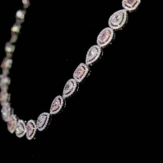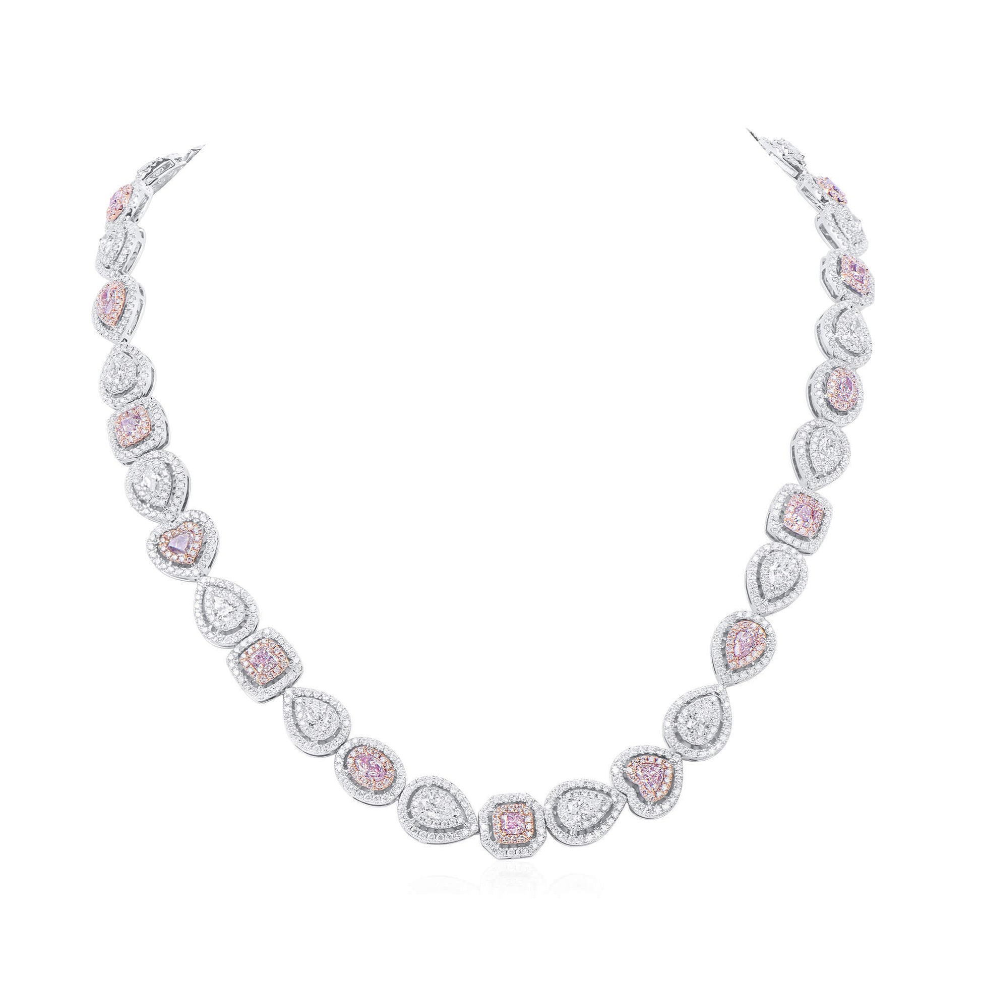 18K White Gold Statement Necklace With 4.60 TCW Pink Mix Shape Natural Diamond, GIA Certified