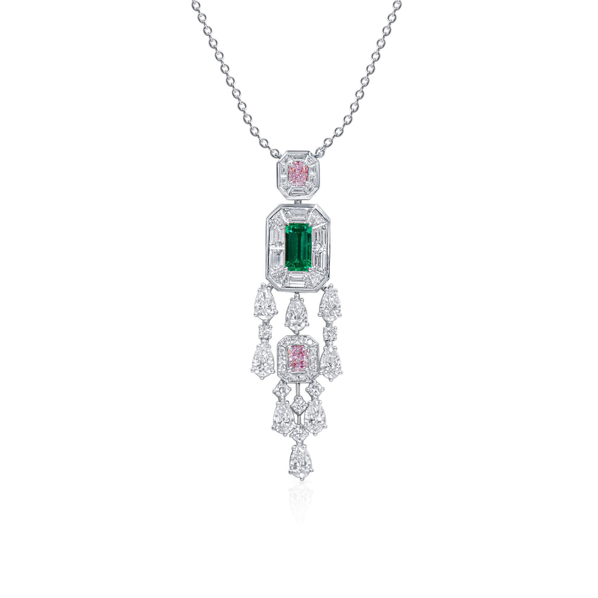 18K White Gold Statement Pendant With 0.86 TCW Octagonal Shape Natural Emerald, GRS Certified