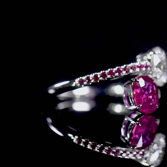 18K White Gold Statement Ring With 1.21 TCW Oval Shape Natural Ruby, AGL Certified