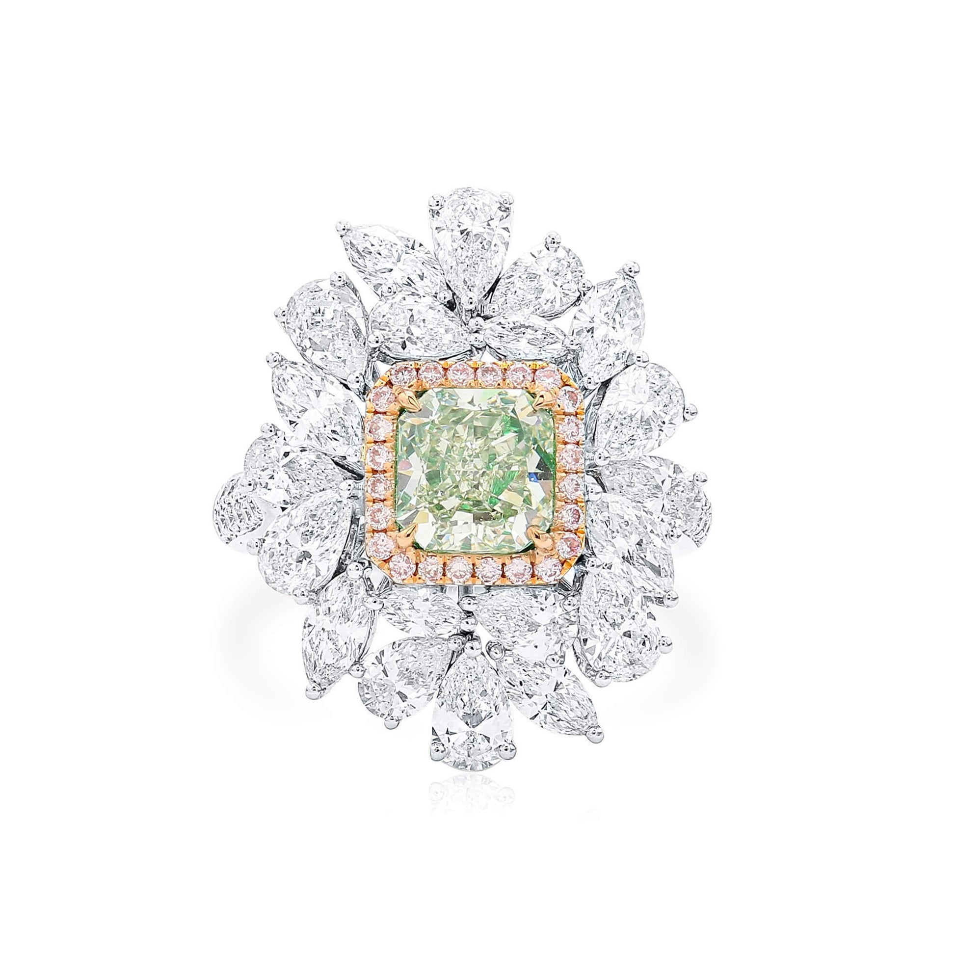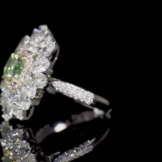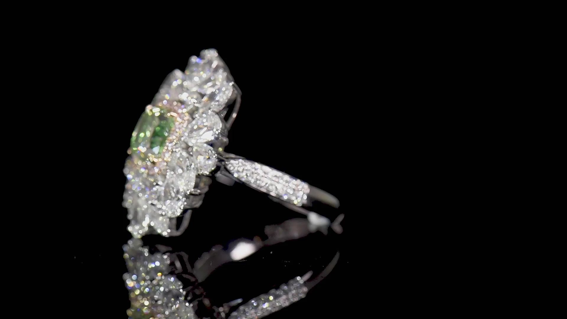 18K White Gold Statement Ring With 1.51 TCW Green Radiant Shape Natural Diamond, GIA Certified