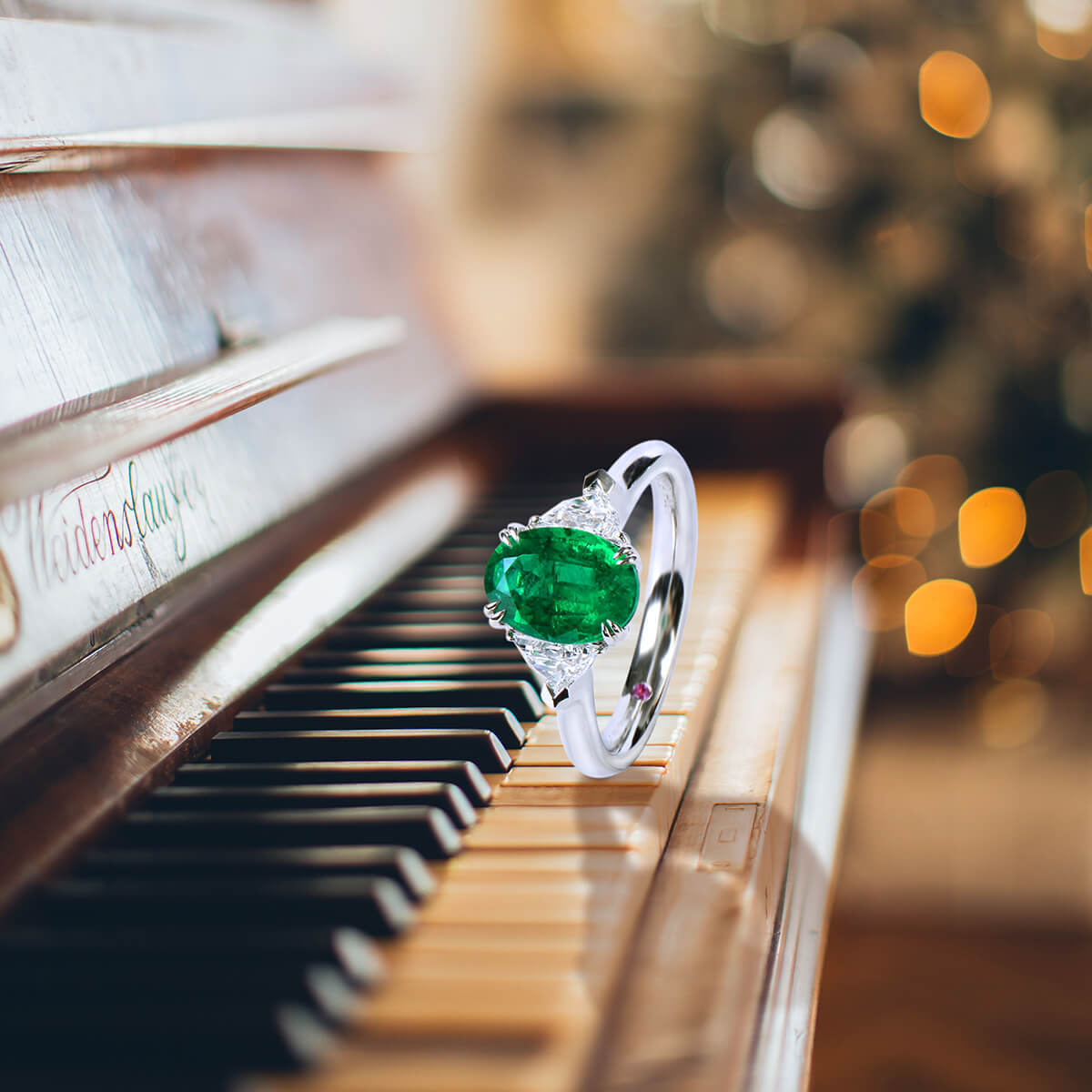 18K White Gold Statement Ring With 1.83 TCW Oval Shape Natural Emerald, GRS Certified