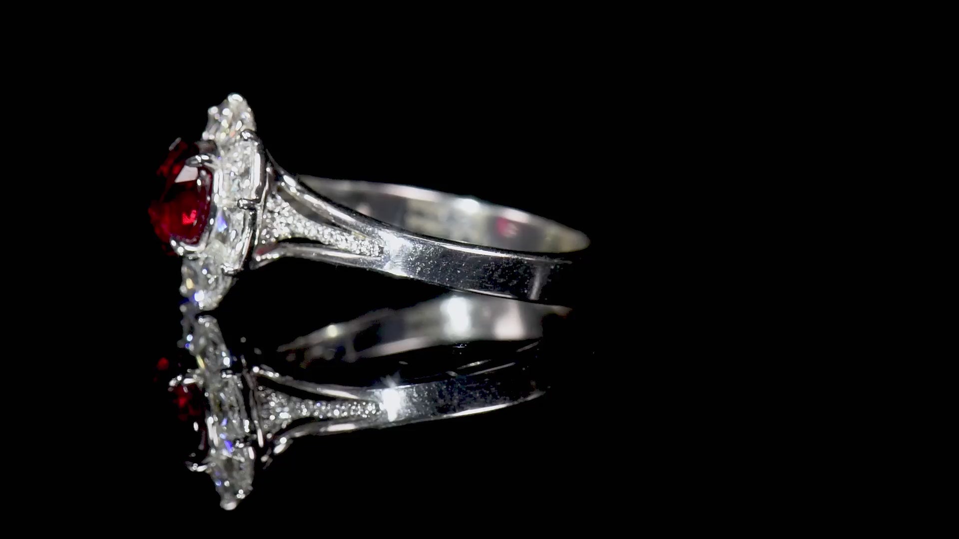 18K White Gold Statement Ring With 2.08 TCW Oval Shape Natural Ruby, GRS Certified