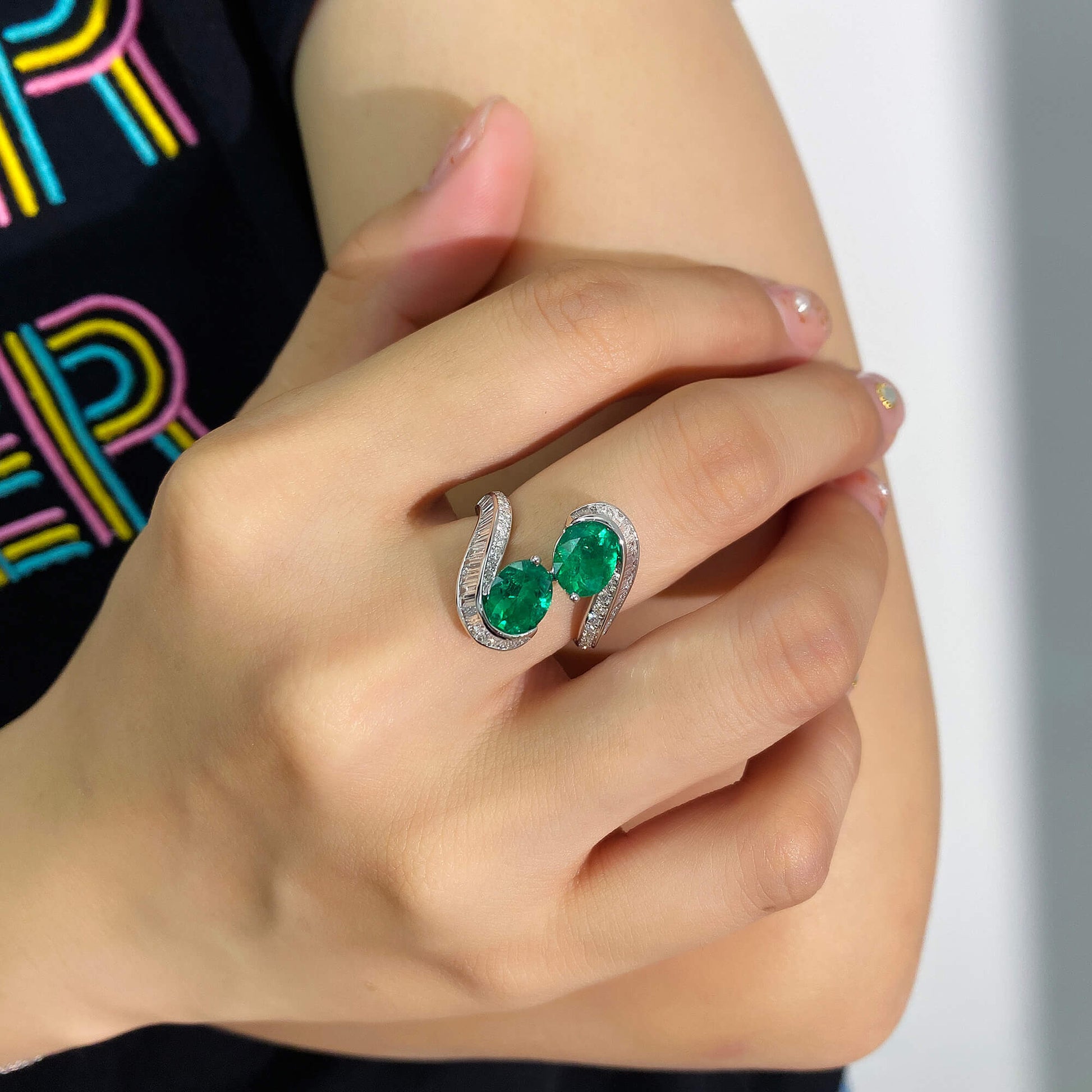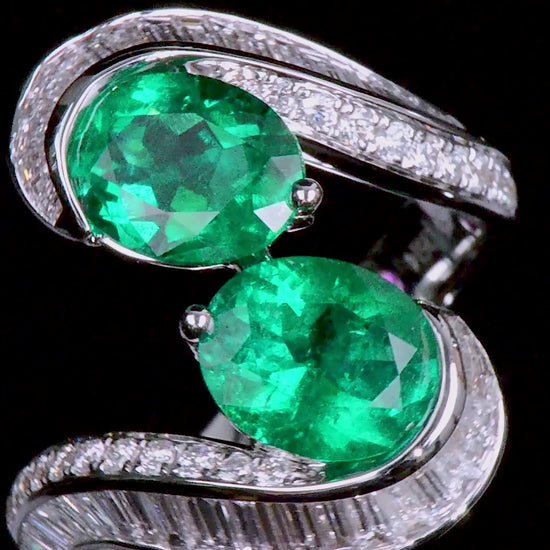 18K White Gold Statement Ring With 2.22 TCW Oval Shape Natural Emerald, GRS Certified