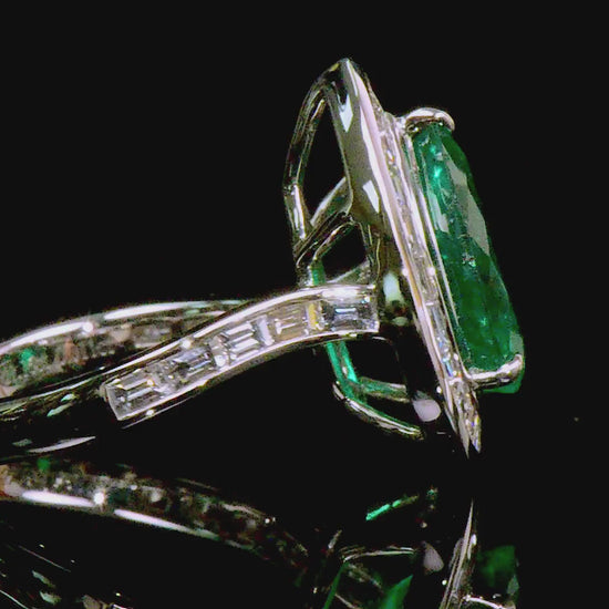 18K White Gold Statement Ring With 3.40 TCW Pear Shape Natural Emerald, GRS Certified