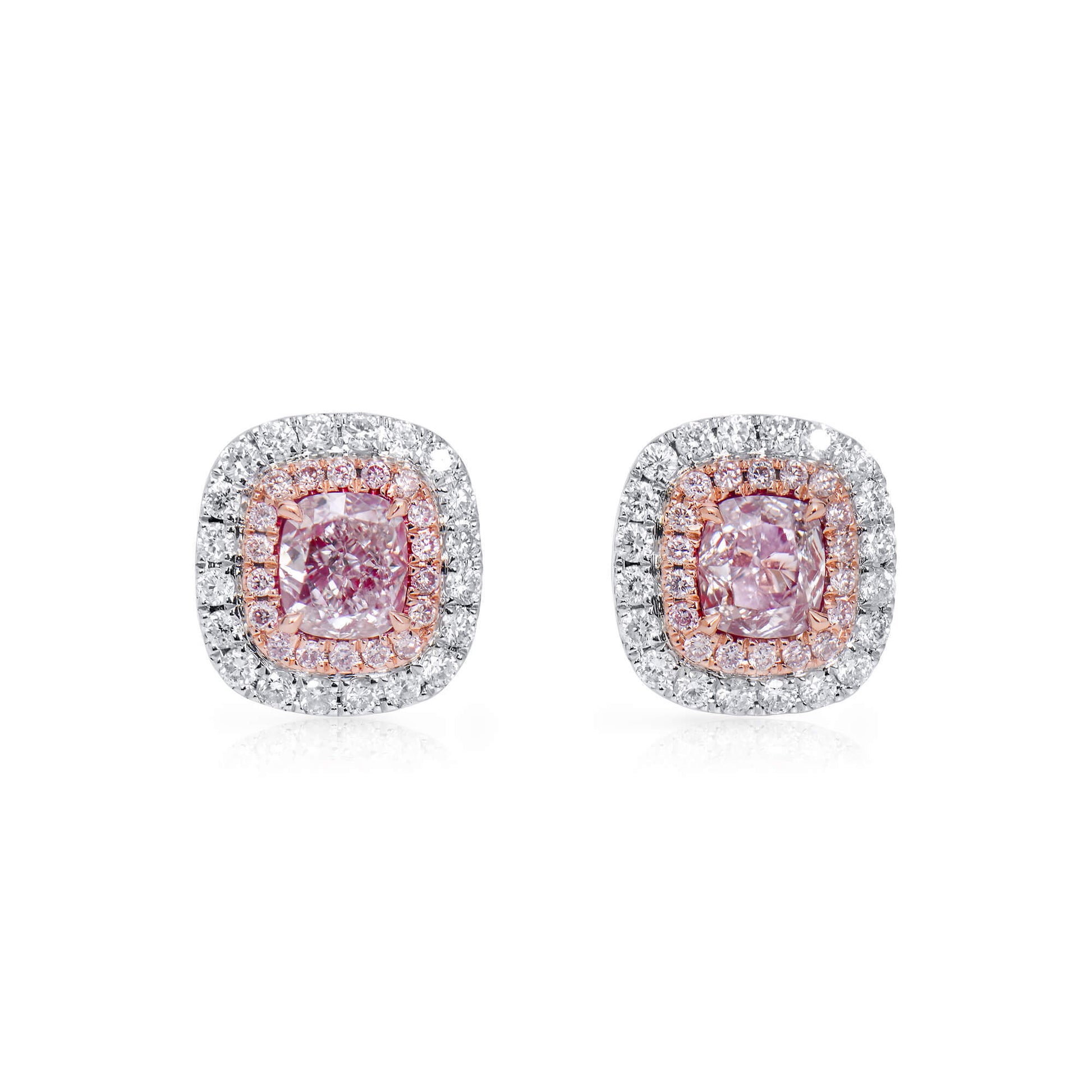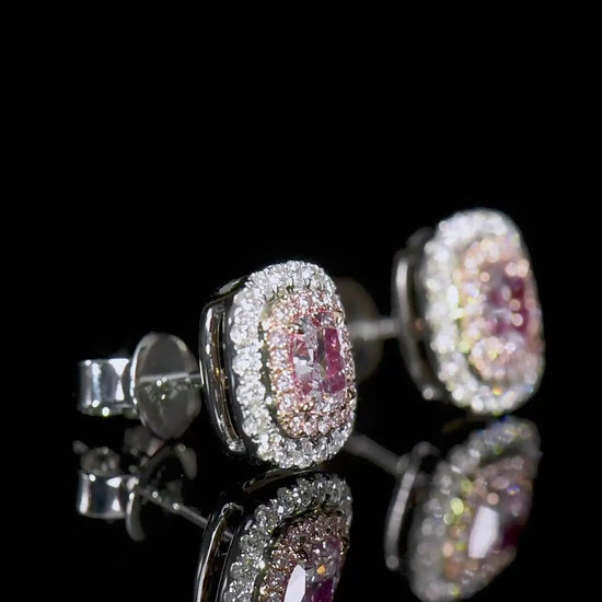 18K White & Rose Gold Statement Earrings With 0.66 TCW Pink Cushion Shape Natural Diamond, GIA Certified