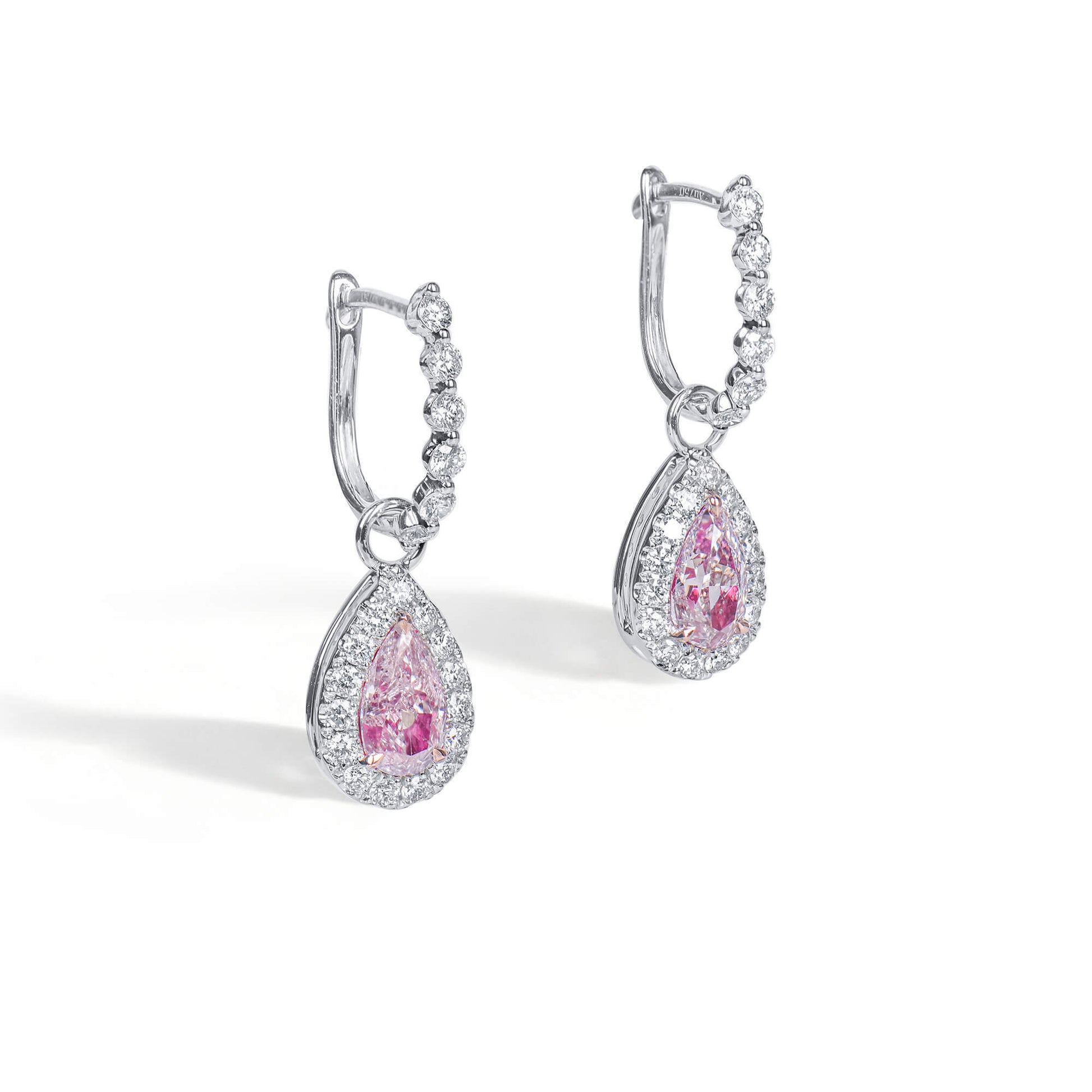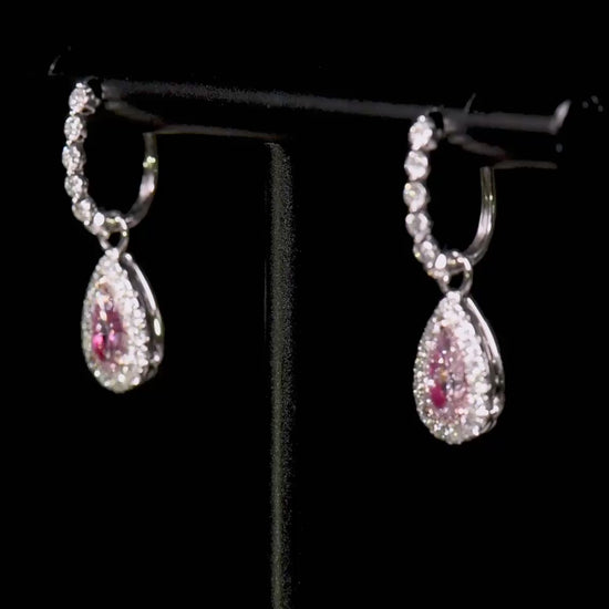 18K White & Rose Gold Statement Earrings With 1.06 TCW Pink Pear Shape Natural Diamond, GIA Certified