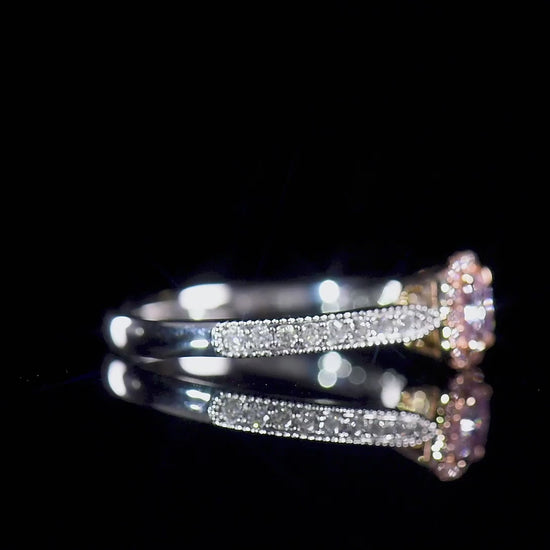 18K White & Rose Gold Statement Ring With 0.50 TCW Pink Cushion Shape Natural Diamond, GIA Certified