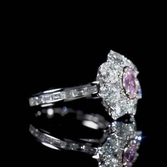 Exuding timeless sophistication, this exquisite 18k White & Rose Gold statement ring is a true expression of refined luxury. At its center lies a captivating oval shape pink natural diamond, masterfully cut to reveal exceptional brilliance and depth. With a remarkable total carat weight of 0.50, the design commands attention while maintaining an air of understated elegance. The luminous white gold setting enhances the rare beauty of the pink diamond, creating a harmonious balance of modern refinement and classic allure. An extraordinary piece crafted for the most discerning collector, this ring is destined to become a treasured heirloom.