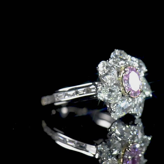 18K White & Rose Gold Statement Ring With 0.50 TCW Pink Oval Shape Natural Diamond, GIA Certified